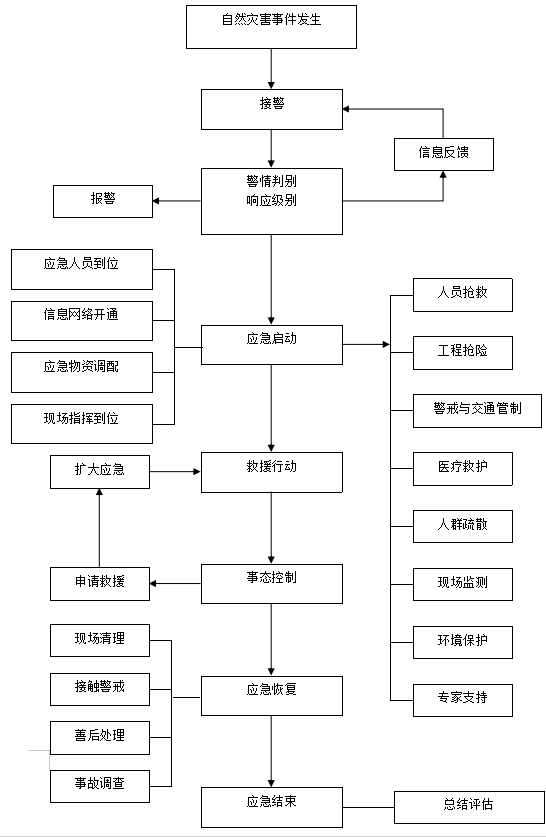 成立自然灾害应急指挥部、自然灾害应急处置工作组、抢险救护组、疏散处置组、宣传报道组。