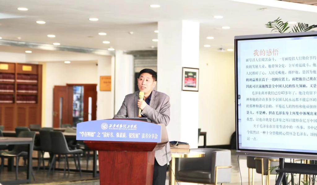 本次读书分享会邀请了党委学生工作部、图书馆及各二级学院优秀学生工作干部作为主讲人,分享他们在读书过程中的感悟和收获。在分享会上,主讲人们分享了他们选择的书籍和阅读心得。有的主讲人介绍了一些经典的文学作品,如《毛泽东生活记事》、《我与地坛》等,从中汲取了不同的人生智慧和价值观。还有的主讲人选择了一些专业相关的书籍,如《大国小村——十八洞村的社会学考察》、《致青年教师》等,他们通过阅读这些书籍,提高了自己的专业素养和工作能力。