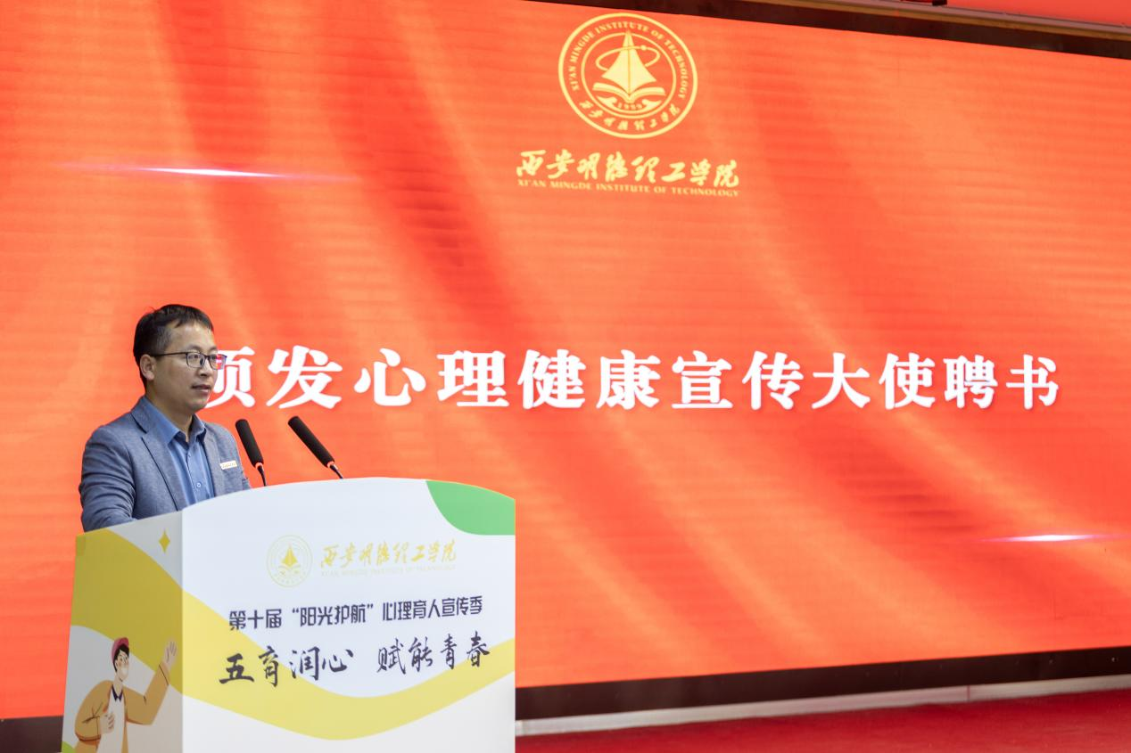 党委组织宣传部副部长张亚平宣读《关于聘任心理健康宣传大使的决定》。