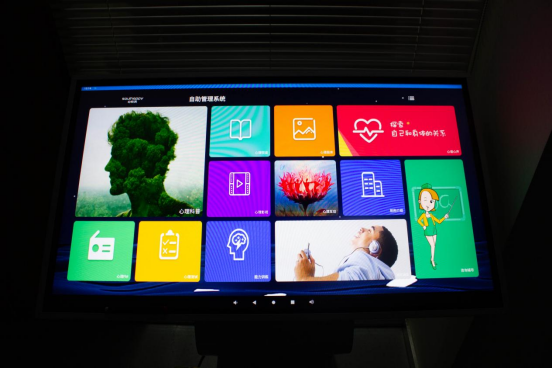 音乐放松室拥有音乐放松椅、心理健康自助仪、AR虚拟投射互动宣泄系统、体感音波床等专业心理健康辅助设备。音乐放松椅让个体坐在上面,通过聆听音乐的旋律和节奏逐渐缓解化解焦虑、抑郁等不良情绪,消除和缓解紧张,促进身心的放松;心理健康自助仪既可以帮助个体通过自测量表测量自己的心理健康状况,也可以帮助个体通过观看视频或聆听音乐放松心情;AR虚拟投射互动宣泄系统,融合心理游戏放松理论,采用计算机视觉技术和多媒体投影显示技术,营造一种似真亦幻的动感的现代化全新的交互式互动体验,将来访者与屏幕之间互动起来,进而帮助来访者达到放松情绪的目的;体感音波床以音乐放松催眠训练为主,结合智能音乐放松系统进行呼吸训练、心理视频、音乐放松、不同频率音乐实现与人体生理波谐振,实时诱导大脑α波,根据放松、催眠引导语暗示,实现身心放松同时感受躯体放松,是集音乐放松训练及身心、躯体放松为一体的全新音波催眠设备。