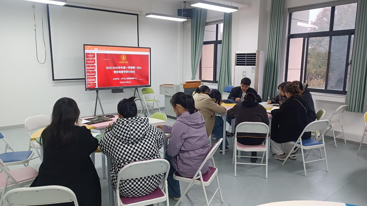 为推动心理咨询师队伍专业化建设,提升心理咨询师专业能力,10月21日下午,大学生心理健康教育中心在明心楼南203活动室召开2025年秋季学期第一次心理咨询督导研讨会议。会议由专职心理咨询师曹源老师主持,全体专兼职心理咨询师参会。