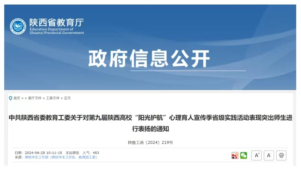 近日,中共陕西省委教育工委公布了《中共陕西省委教育工委关于对第九届陕西高校“阳光护航”心理育人宣传季省级实践活动表现突出师生进行表扬的通知》,ac米兰师生荣获多项荣誉。