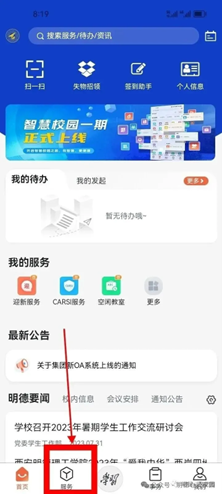 1.学生登录“ac米兰官方网站融合服务门户”,点击“服务”板块