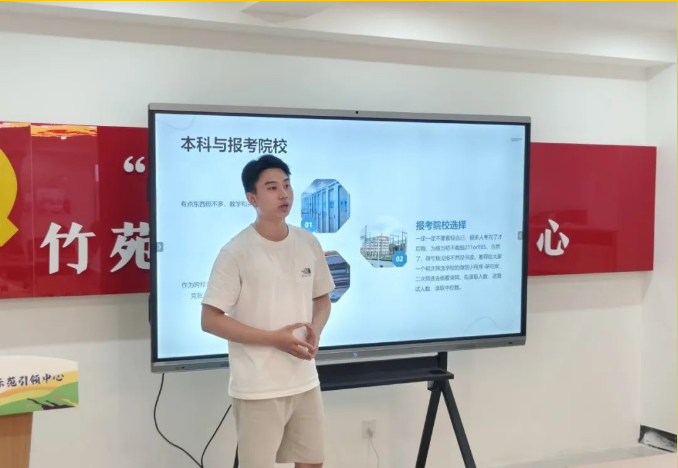 简俊杰同学作为国旗护卫队原队长,结合自身考研经历,从初试成绩分析、备考经验分享、复试准备等多个维度进行了细致的讲解。特别强调了前期院校调研的重要性,提醒同学们要综合考虑院校招生政策、专业排名等因素。通过专业课复习的方法及公共课的提分技巧,不仅让同学们对考研有了更全面的认知,也为大家在后续科学规划时间提供了有益参考。帮助在场队员对考研、四六级备考有了更为深刻全面的认识。
