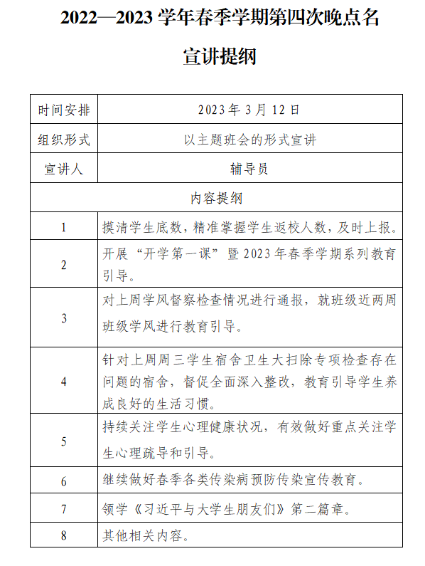 2022-2023学年春季学期第四次晚点名宣讲提纲