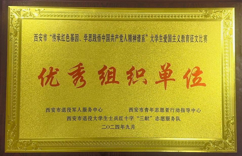 为深入学习贯彻习近平强军思想,推动全民国防教育走深走实,进一步营造全社会关心国防、热爱国防、建设国防、保卫国防的良好氛围。10月31日,由西安市退役军人事务局主办的“传承红色基因、学思践悟中国共产党人精神谱系”大学生爱国主义教育征文比赛颁奖典礼在西安邮电大学举行。学校人民武装部获评“优秀组织单位”荣誉称号。学校教师兰艳、王旭光、郭庆、李秋红等4人荣获大赛优秀指导教师荣誉称号。学生孙斯妍等4人征文作品获得一等奖1项、二等奖1项,三等奖2项。