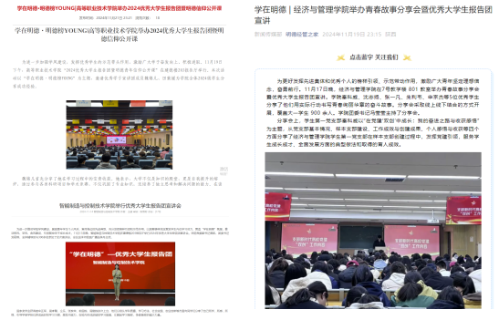 11月,举办2024学在明德·明德榜YOUNG优秀大学生报告团暨明德青年信仰公开课首场宣讲活动,随后各学院分别进行巡讲。