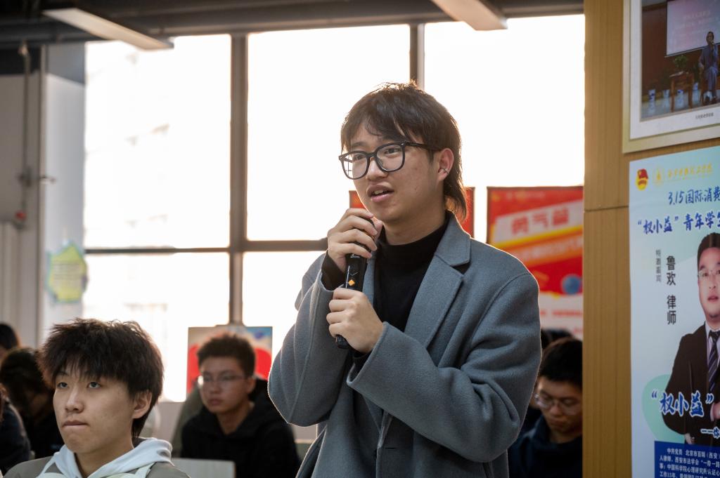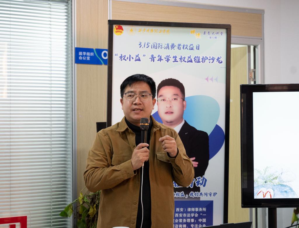 3月13日下午,在第43个“3·15”国际消费者权益日到来之际,由校团委主办、校学生会承办的“权小益”在行动—你的权益,我们共同守护主题沙龙在百合楼“一站式”学生社区党团活动中心举行。北京市百瑞(西安)律师事务所副主任鲁欢律师受邀主讲,100余名学生通过案例解析、互动答疑等形式,学习消费者权益保护知识,提升维权能力。