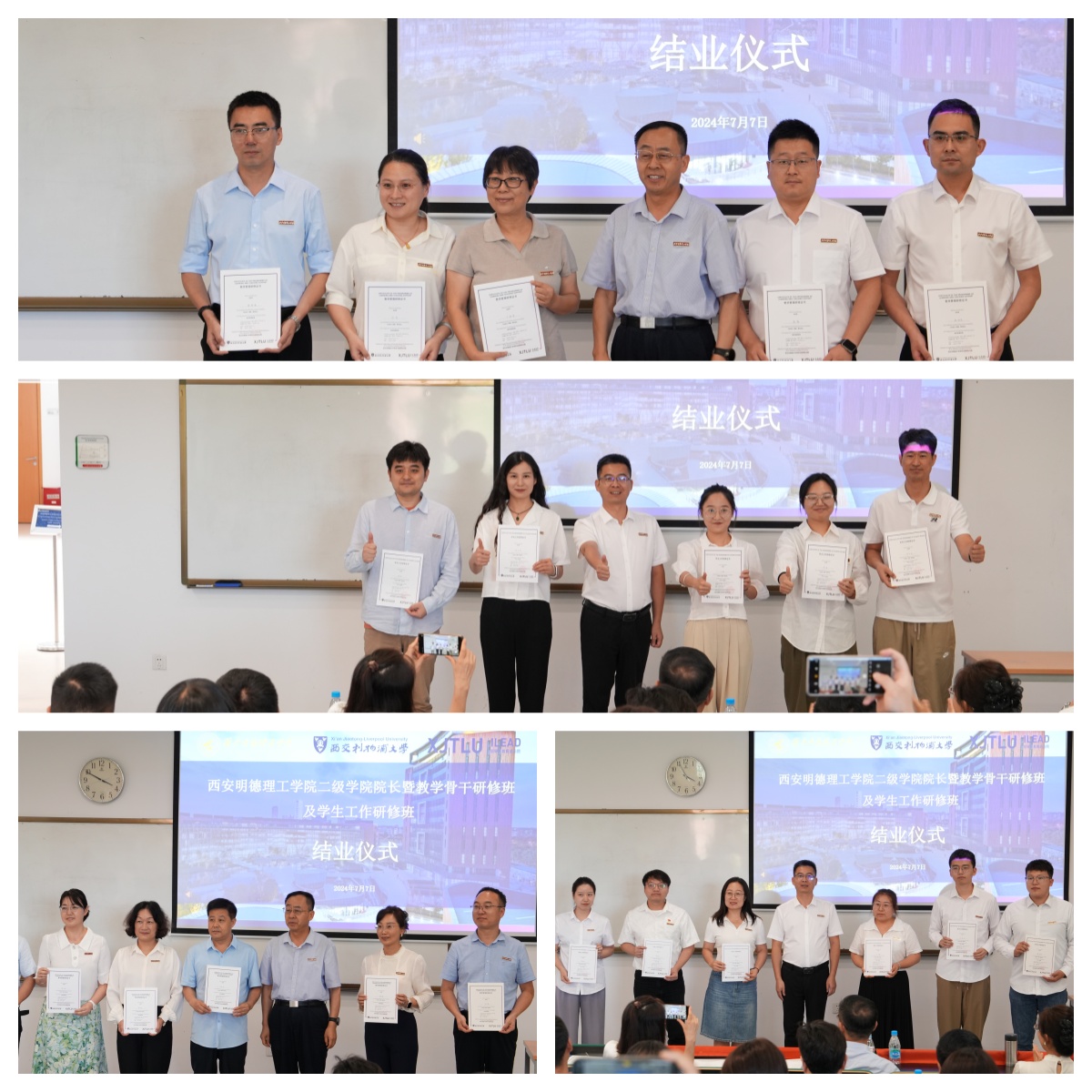 2024年7月7日下午,ac米兰官方网站二级学院院长暨教学骨干研修班和学生工作研修班结业式在西交利物浦大学新兴科学楼举行。ac米兰官方网站党委副书记、副校长白秦川,党委副书记、副校长刘星出席了结业式,领导与教育前沿院课程研发专员孙思宇主持结业式。