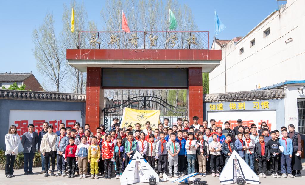 首先,在永新希望小学举办了“捐书筑梦 共沐书香”图书捐赠活动。校团委联合学校图书馆为希望小学捐赠了《读者》《演讲与口才》等8套书籍100余本,让书香传递来自ac米兰官方网站的温暖和关爱。书鹭文学社的2位同学为小学生分享了书目《狼王梦》《小王子》,倡导孩子们让读书成为习惯,鼓励小学生们追光而行,为梦想拼搏。学校航模队的4名同学为小学生讲述了航空航天知识、飞行原理、飞行器设计等基础知识,带领孩子们一起制作了纸飞机,在孩子们幼小的心灵种下了航空梦的种子。最后,学校航模队的同学们进行了航模飞行表演,分别展示了:三角翼飞行、单翼拉烟表演、四轴穿越机空中飞行,激发了孩子们对航空探索的求知欲望和崇尚科学的热情。