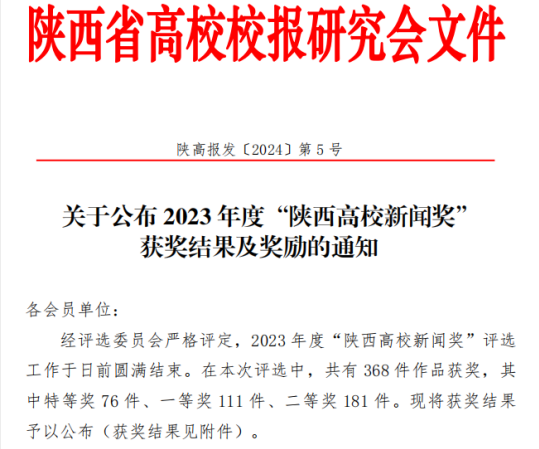 据了解,“陕西高校新闻奖”是陕西省高校校报新闻界的最高奖,评选活动由陕西省高校校报研究会主办,每年评选一次。参评作品需在所在高校校报刊发,共分为消息、通讯、言论、新闻图片、新闻专栏、报纸版面6类。
