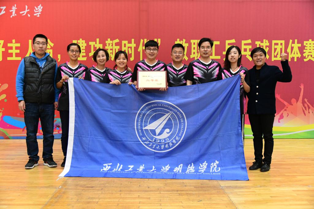 11月23日、24日,西北工业大学校工会和体育部联合举办的“当好主人翁,建功新时代” 教职工乒乓球团体赛在友谊校区翱翔体育馆进行。明德学院代表队最终荣获二等奖。