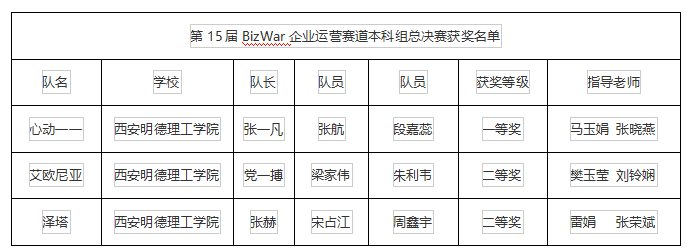 该赛事通过模拟企业运营实景,训练学生在不确定经营环境里,面对多个竞争对手,发扬团队合作精神,全面、灵活地运用生产管理、市场营销、财务会计、战略管理等管理学知识和预测、优化、对策、决策等方法,正确制定企业的决策,达到企业的战略目标。比赛对促进管理学理论知识与实践的结合,院校之间的交流,培养学生的综合素质和团队合作精神具有重要意义。