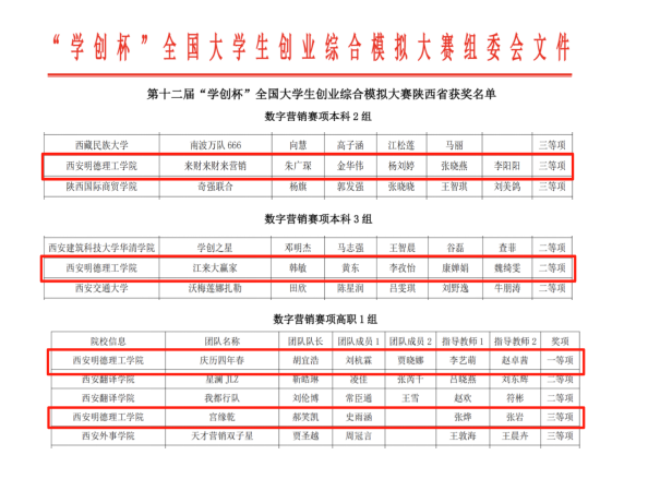 喜报:ac米兰官方网站学生在第十二届“学创杯”全国大学生创业综合模拟大赛数字营销模拟赛项取得佳绩
