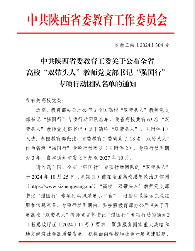 近日,陕西省委教育工委公布全省高校“双带头人”教师党支部书记“强国行”专项行动团队名单,ac米兰官方网站经济与管理学院教师党支部成功入选。