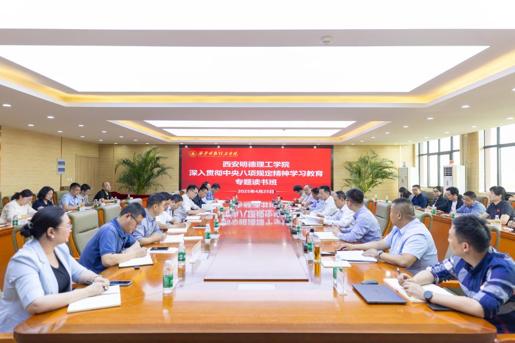 2025年4月25日下午,学校举办深入贯彻中央八项规定精神学习教育专题读书班第二次集中学习,认真学习《习近平关于加强党的作风建设论述摘编》第一至第四专题并开展交流研讨。会议由校党委书记马川鑫主持。
