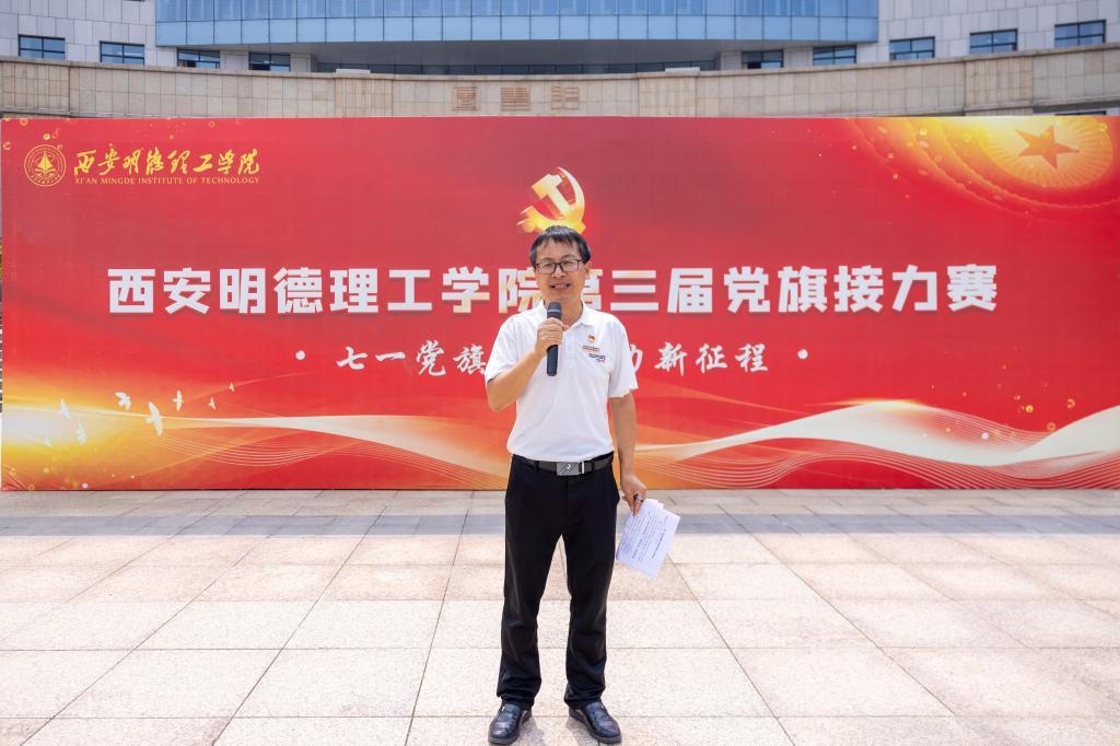 为深入学习贯彻习近平新时代中国特色社会主义思想和党的二十大、二十届三中全会精神,扎实开展深入贯彻中央八项规定精神学习教育,6月18日下午,学校在中心广场成功举办“七一党旗红·接力新征程”庆祝中国共产党成立104周年暨第三届党旗接力赛。校党委书记马川鑫,校党委副书记、副校长刘星,副校长陈鹏,相关职能部门、教辅单位负责人,各基层党委(党总支)书记、副书记,全体党支部书记、党建专干,16支参赛队伍和党员师生代表参加开幕式。开幕式由党委组织宣传部副部长张亚平主持。