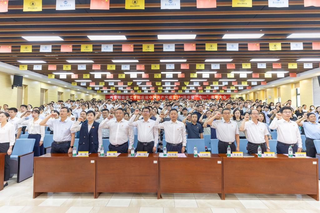 大会在庄严的国歌中拉开帷幕。党委组织宣传部副部长张亚平带领预备党员入党宣誓、老党员重温入党誓词。全体党员高举右拳,面向鲜红党旗庄严宣誓,铿锵誓言响彻会场,字字千钧,直击每位党员的心灵深处。