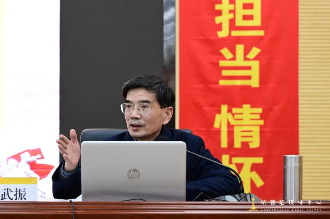 为深入学习党史、新中国史、改革开放史、社会主义发展史,教育引导广大师生知史爱党、知史爱国,推动学习教育常态化,11月6日下午,学院邀请西安邮电大学马克思主义学院院长袁武振教授在建德楼203报告厅为师生作明德青年信仰公开课“四史”教育专题辅导报告第二讲。报告会由党委(学生)工作部副部长童杨梓主持。
