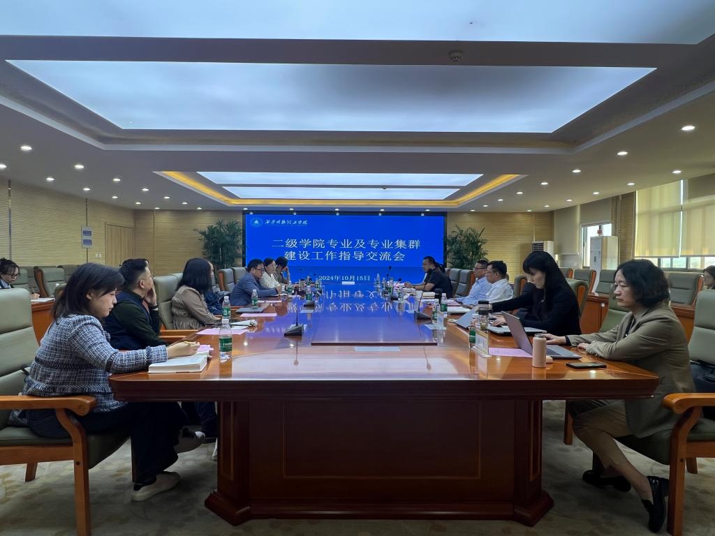 10月15日,学校邀请顾永安教授在明志楼518会议室对二级学院专业集群建设工作指导交流。副校长朱延波出席会议并讲话。信息工程学院、智能制造与控制技术学院、语言文化传播学院、经济与管理学院、艺术与设计学院以及高等职业技术学院院长、教学副院长、专业负责人及相关职能部门负责人参加会议。会议由教务处副处长任华主持。