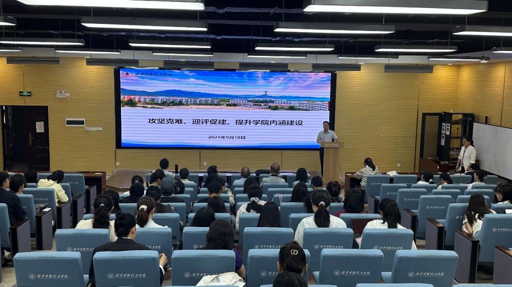 学院党委书记何文举以“攻坚克难、迎评促建、提升学院内涵建设”为题,从统一思想、切实增强评建工作的责任感与紧迫感,坚持问题导向、切实做好半年检查的整改工作到位,全力以赴、切实提升学院内涵建设水平三个方面对新学期工作进行了安排和动员,并提出要求。他指出,迎评促建是学院当前工作的重中之重,全体教职工需高度重视、协同努力,确保评建工作取得优异成绩;激励广大教职工同向发力、同频共振、同题共答,竭尽全力、同心协力,打赢本科教学工作合格评估“攻坚战”。