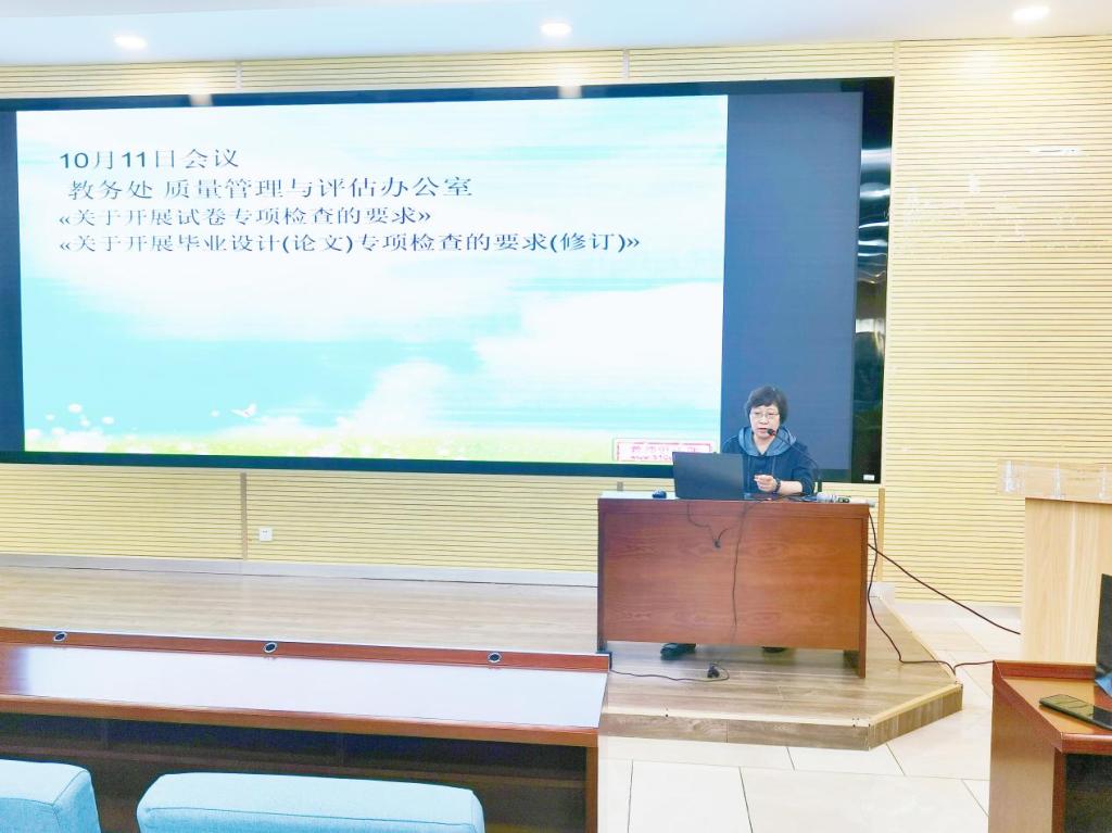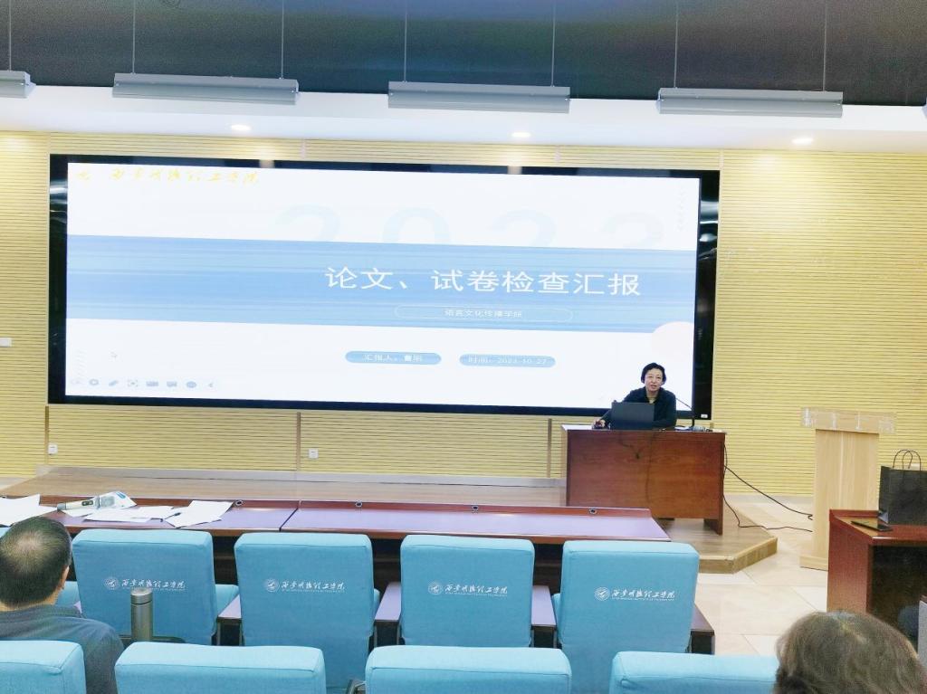 李云平副教授、曹明教授、马桂花教授对试卷及毕业论文抽查问题中的共性问题和个性问题都进行了细致的反馈,并给出合理的建议。她们指出应规范试卷批改的条例流程,规范论文指导的条例流程,实行奖惩制度。此外,学院需统一对教师进行试卷批改的培训,使教师熟悉、知晓规章制度、规范条例等;提前对指导教师进行论文指导及评阅的培训,使教师熟悉、知晓论文格式等方方面面。英语专业负责人柴芸对试卷及毕业论文抽查问题进行汇报,希望英语专业老师认真对待试卷评阅和论文指导,同时要求试卷审核人能切实起到审查的作用。大学英语课程负责人史晓亮结合大学英语试卷自查过程中反馈的问题,提出了大学英语试卷的整改方案。