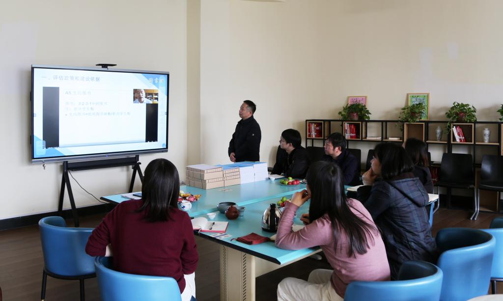 王俊玉馆长曾任陕西学前师范学院党政办公室副主任、发展规划处副处长(主持工作),全程参与了学前师范学院自评报告撰写及评建材料建设工作,经验丰富。首先,王馆长通过PPT向大家解读了本科教学合格评估各项指标内涵,尤其对图书馆相关指标进行了分析与明确。然后,他从汇报材料撰写、评建支撑材料整理、专家进校后关注点重点建设等方面做了经验分享交流。同时,王馆长将自己执笔起草的管理制度、汇报材料等汇编册也做了一一展示交流。
