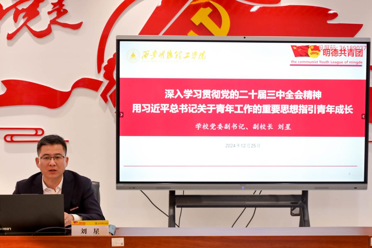 刘星从学习贯彻党的二十届三中全会精神、深刻认识其重大意义,以及用党的二十届三中全会精神和习近平总书记重要思想指引青年成长等方面结合大量具体事宜进行了深度阐述,着重从帮助青年确立理想信念、依靠青年推动青年工作、以及青年工作对党和国家的重要性等三个维度,深入解读了习近平总书记关于青年工作的重要思想。尤其强调要引导青年学生坚定理想信念,增强“四个意识”、坚定“四个自信”、做到“两个维护”,自觉听党话、跟党走。让青年学生深刻认识到中国特色社会主义制度的优越性,坚定对中国特色社会主义的道路自信、理论自信、制度自信、文化自信,要将个人的成长成才与党和国家的事业紧密结合起来,为实现中华民族伟大复兴的中国梦而努力奋斗。同学们深受启发,表示将把思政课的精神内涵融入到日常学习、工作和生活中,努力书写属于本届委员会和主席团的青春华章。