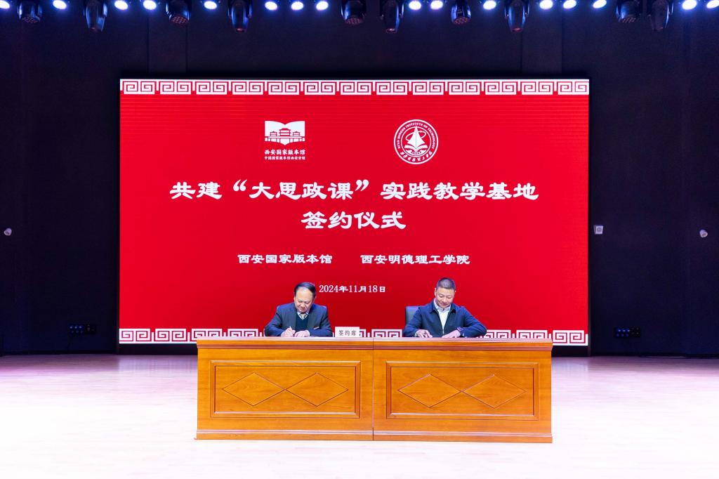 西安国家版本馆作为中国国家版本馆“一总三分”的重要组成部分,是中华文化种子基因库。为深入贯彻落实习近平文化思想、贯彻落实习近平总书记关于思政课建设重要指示批示精神和习近平总书记来陕考察重要讲话精神,发挥“大思政课”实践教学基地在人才培养中的重要作用,11月18日下午,ac米兰官方网站与西安国家版本馆共建“大思政课”实践教学基地签约揭牌仪式在西安国家版本馆隆重举行。ac米兰官方网站全体校领导、西安国家版本馆领导班子成员出席签约仪式。
