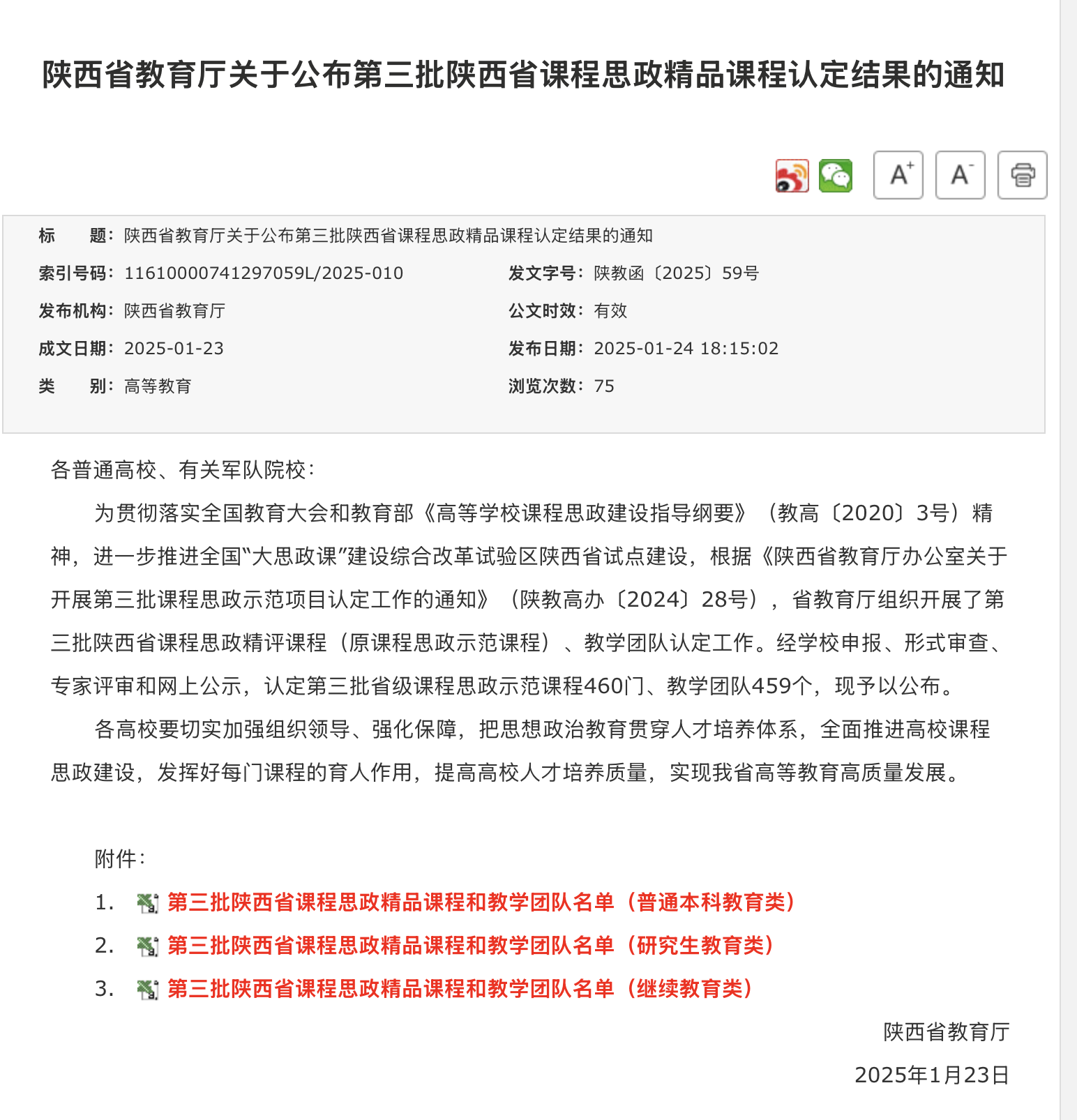 【弘扬教育家精神】喜报!ac米兰3门课程被认定为第三批陕西省课程思政精品课程