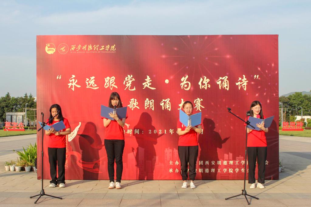 为庆祝中国共产党成立100周年,教育引导青年学生继承优良革命传统,传承红色基因,感党恩、听党话、跟党走,牢记党的初心和使命,激发广大学生爱党爱国爱社会主义的家国情怀,6月1日下午,学校团委在中心广场举办了“永远跟党走·为你颂诗词”红色经典诗词诵读大赛。