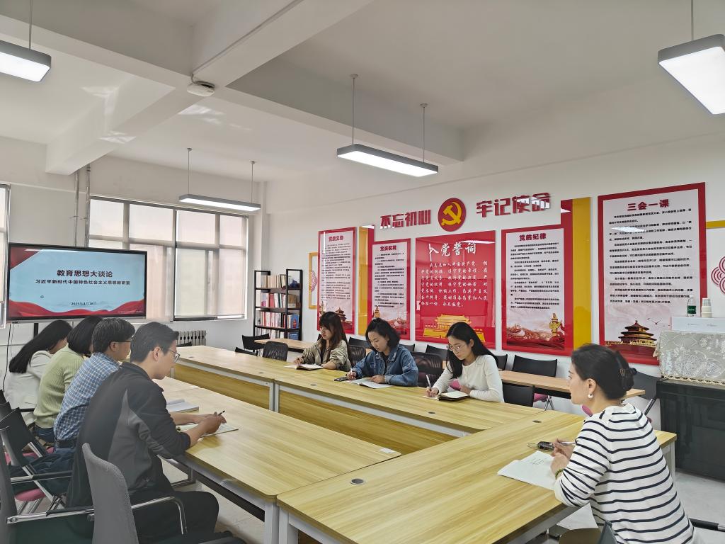 为深入贯彻党的二十大和二十届三中全会精神,进一步学习习近平总书记在今年全国“两会”上关于教育的新的重要论述,按照学院教育思想大讨论工作计划,4月16日上午,习近平新时代中国特色社会主义思想概论教研室在明志楼306会议室开展了“2025年教育思想大讨论”专题研讨活动。会议由教研室主任周蓓蓓主持,教研室全体无课教师参会。
