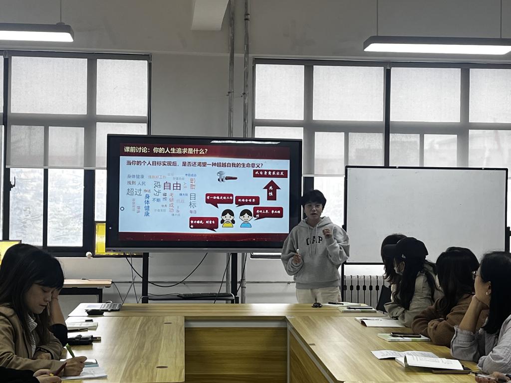 第一项议程:示范引领,精研课堂。全国民办高校思想政治理论课青年教师教学展示中特等奖获得者王婉菲老师以《为何要树立高尚的人生追求》为题,全体教师进行了一场精彩的示范课展示。随后,马克思主义学院特聘教授、陕西省价值哲学学会副会长、陕西省伦理学研究会副会长孔润年教授对示范课进行了专业、深入的点评,他充分肯定了王老师的教学设计亮点,并就如何进一步优化课堂互动、深化理论阐释和增强教学的知识性提出了宝贵建议,为全体教师提供了高水平的教学示范。