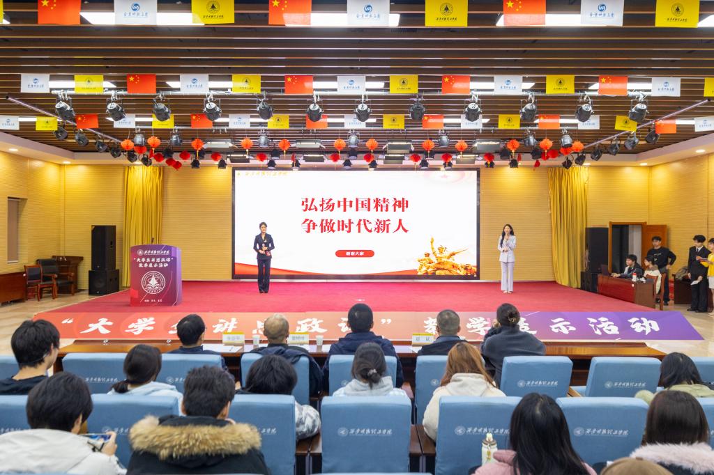 11月24日晚,学校“大学生讲思政课”教学展示决赛在建德楼203成功举办。本次活动旨在深入学习宣传贯彻党的创新理论,充分发挥思想政治理论课在立德树人中的关键作用,激发大学生学习思政课的主动性和创造性,展现新时代青年学子的理论素养和精神风貌。