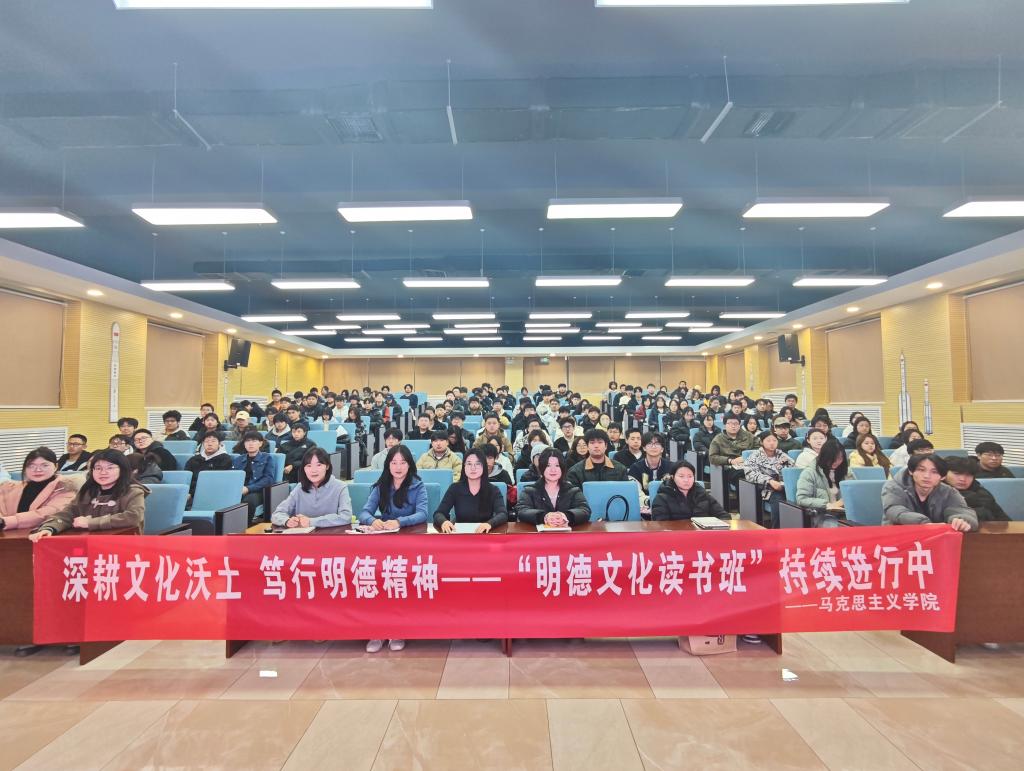 2025年11月26日,马克思主义学院第十六期“明德文化读书班”暨11月读书交流分享活动在建德楼201顺利举办。本次活动特邀豆阿敏、刘梦婷、武美妤、张剑蓉四位思政课教师担任分享嘉宾,她们携经典著作与200余名学子共展开一场深度思想对话,引领大家沉浸式感受书籍的力量与文化的魅力。