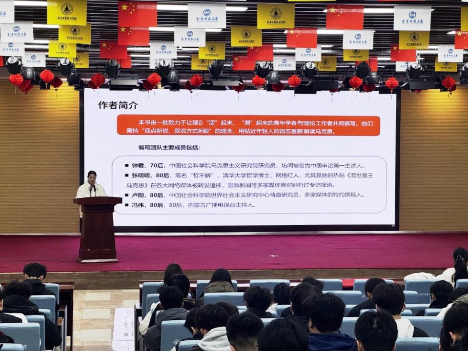 金鸽老师以《马克思靠谱》为切入点,讲述了马克思的生平事迹与伟大思想。通过生动鲜活的语言,金鸽老师将马克思这位伟大的思想家从书本中“请”到大家面前,让同学们深刻感受到马克思不仅有着深邃的思想洞察,更有着鲜活的人格魅力。金鸽老师结合当下社会热点和青年学子的困惑,深入浅出地剖析了马克思主义理论在现实生活中的指导意义,激发了同学们的共鸣。