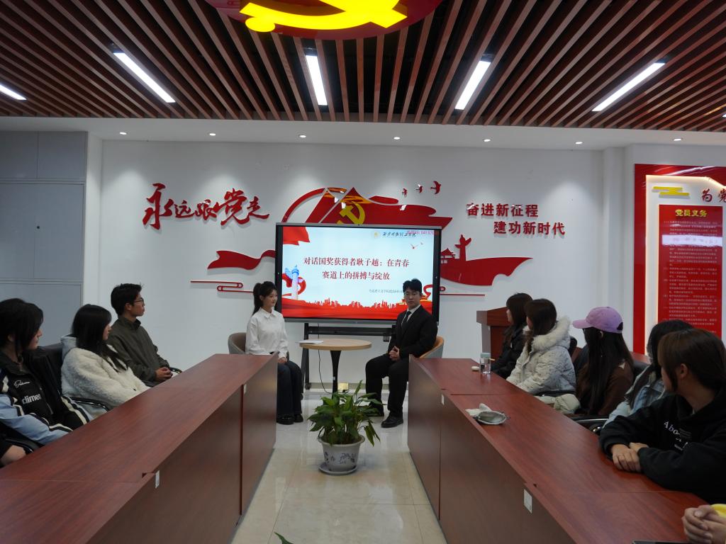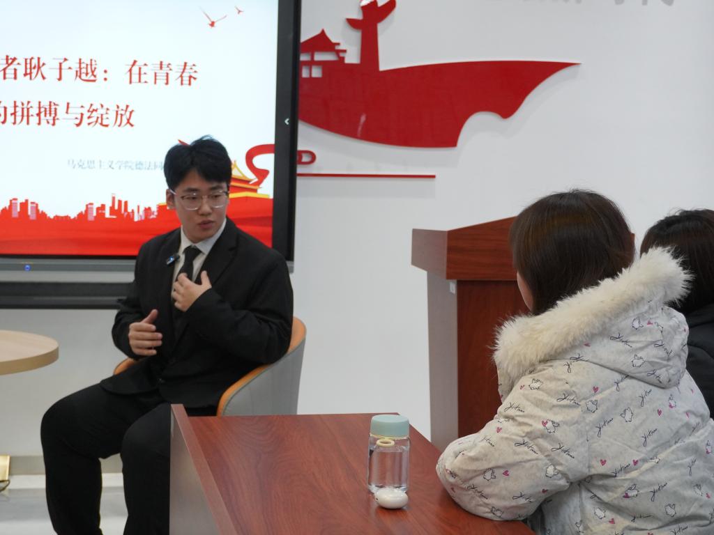 2025年11月26日,由马克思主义学院德法同行社主办、齐越朗诵艺术社承办的“学在明德”系列访谈活动在明志楼北108会议室顺利开展。本次活动聚焦国家奖学金与“明德之星”特等奖学金获得者、机械制造及其自动化专业2024级学生耿子越,通过深度对话,呈现其在学业、竞赛与学生工作中实现多线并进的成长路径,为现场同学提供了一份可借鉴的青春答卷。