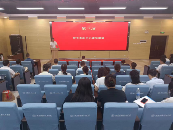 校党委副书记董昊作了总结讲话。他指出,师德师风是一种风气,更是一种意识。教师要廉洁从教、公正执教、严于律己,不断提高自身修养和教学水平,坚守为党育人、为国育才的初心和使命,对学生坚持循循善诱、耐心疏导,切实增强遵守新时代教师职业行为十项准则的思想自觉和行动自觉,不断涵养高尚师德,做党和人民满意的“四有”好老师。