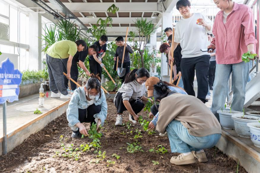 接下来,老师和同学们如火如荼地忙活了起来,体验农耕的乐趣。劳动过程中,在整地、除草、播种、灌溉、施肥等劳动环节中,同学们表现出极大的兴趣和热情,分工合作,互帮互助,大家都认真地埋头苦干,出力流汗,体验劳动的幸福感,耳边不时响起同学们悦耳的笑声,现场井然有序,一派热火朝天的劳动景象。