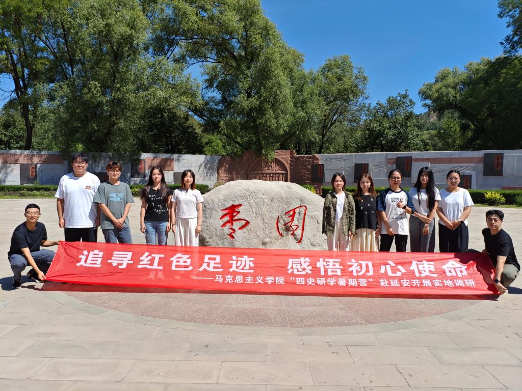 为深入学习贯彻关于“四史”学习教育的重要指示精神,引导青年学子传承红色基因、赓续精神血脉,丰富“四史”类选修课的实践教学模式,2025年7月14日至7月17日,马克思主义学院“四史暑期营”赴陕西延安开展“追寻红色足迹 感悟初心使命”实践调研活动。暑期营12名队员于当日下午1点抵达革命圣地延安,通过实地参观和主题教育活动,深入学习延安精神,让红色基因代代相传。