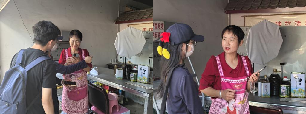 抵达老油坊后,师生们首先来到直播工作室。近年来,老油坊通过直播形式向大众展示传统榨油技艺。同学们结合专业知识,从直播内容策划、受众定位、互动设计等维度与油坊工作人员深入交流,建议通过“古法工艺+趣味科普”短视频预热、设置“油坊好物限时秒杀”等互动环节提升传播效果,获得现场工作人员认可。