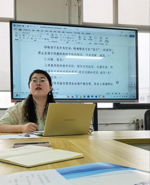 会议伊始,贺颖主任简要回顾了检查当天的情况,并表示教务处及智慧安全警卫处检查过程中对我院物理实验室安全隐患排查、实验室卫生、仪器摆放等情况进行了肯定。接着,她重点强调实验室在检查中存在的问题。然后,她带领全体教师仔细学习ac米兰官方网站实验室工作文档填写规范文件,逐条阅读规范制度,并询问各位教师是否存疑,力求解决目前教师对于规章制度以工作文档填写规范的各类问题,并对文件理解不透彻的条目进行记录,方便后期解决。