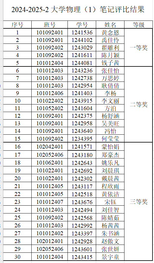 评选过程中,贺颖主任带领物理教研室的骨干教师组成评审团,从内容完整性、书写工整度、逻辑清晰度、创新创意性等多个维度对参赛笔记进行综合评价。经过严格筛选和认真评审,最终评选出了一批优秀课堂笔记。其中,5名同学荣获一等奖,10名同学获得二等奖,15名同学被评为三等奖。