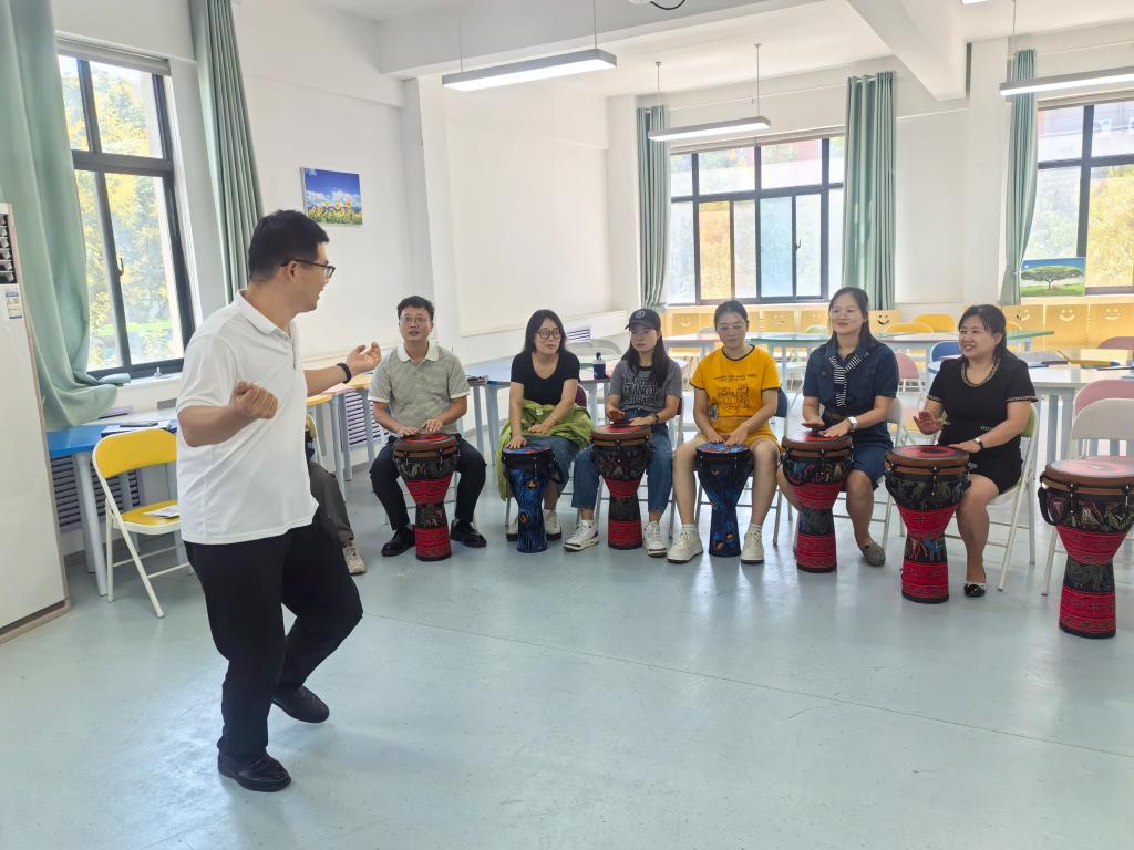 为进一步丰富心理健康教育形式,提升心理健康教育教师的专业素养与实操能力,心理教研室邀请苏东挺老师、郭学鹏老师于2025年9月1日在明心楼南203教室开展了一场别开生面的“鼓圈引导技术在团体心理辅导中的应用与实践”转训。