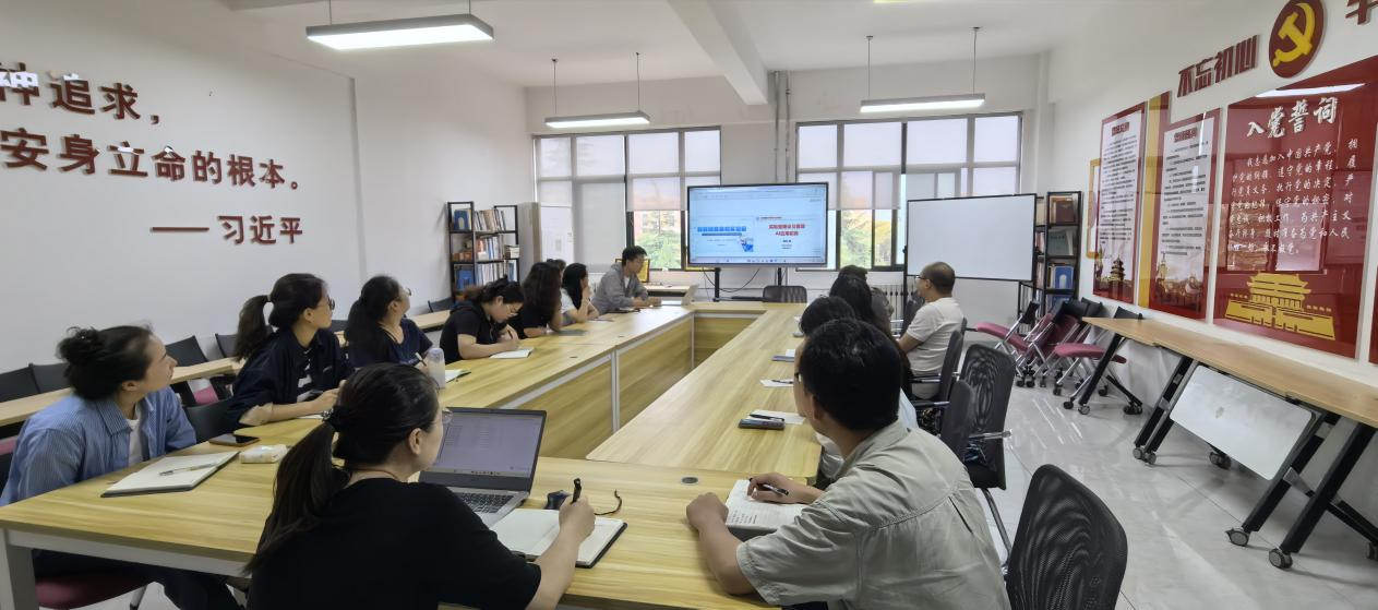 为确保转训效果,贺颖、薛小翠、许超、邹丹等老师在培训结束后,历时一周对培训内容进行系统梳理与整合。从 “物理学科前沿动态”、“AI赋能课程思政教学设计”、“高校实验室建设与管理AI应用”三大模块入手,筛选出与我院物理教学实际高度契合的内容,进行转训。