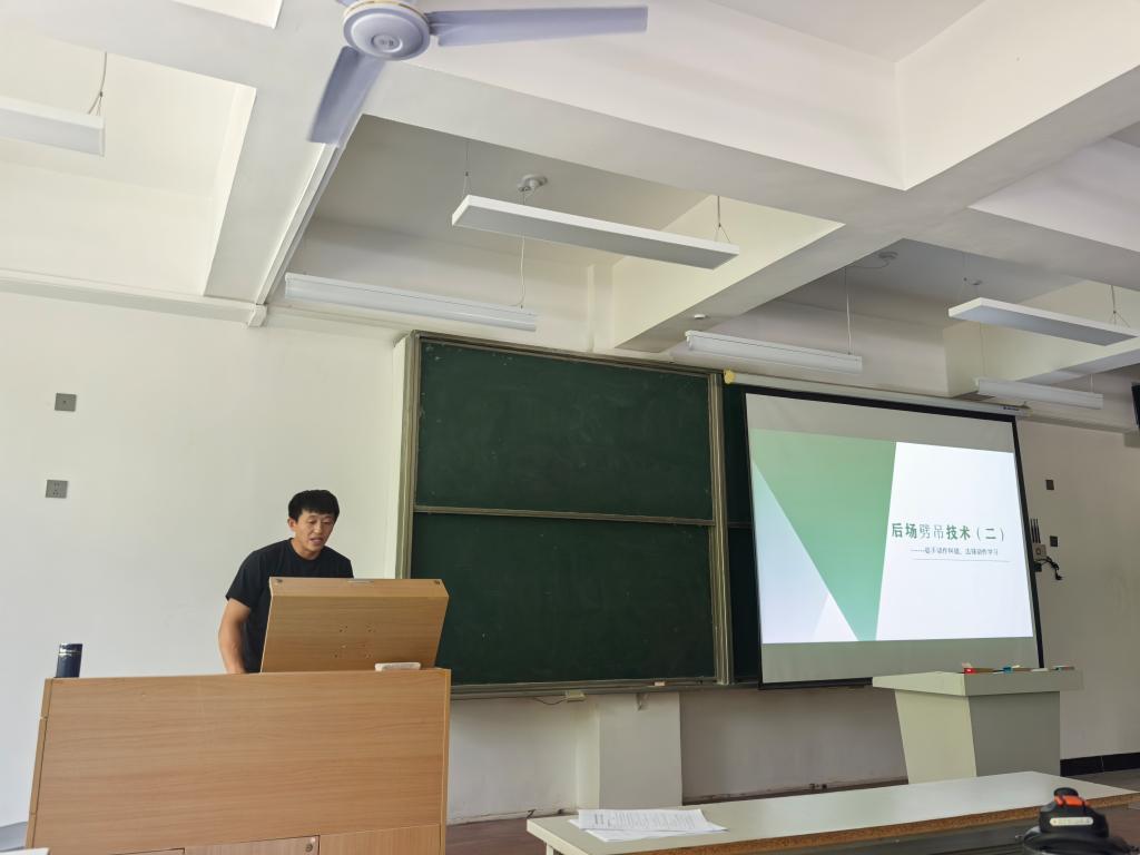 羽毛球专项夏洪波老师的课程创新则围绕体育课中进行AI赋能“后场劈吊技术”展开。教师通过电子产品分析学生动作差异,进行徒手动作纠错以及击球动作分步教学,有效提升了学生技术的稳定性与实战应用能力。夏老师利用现代科技手段,让学生们在技术训练中获得即时反馈,从而更有效地掌握羽毛球后场劈吊技术。