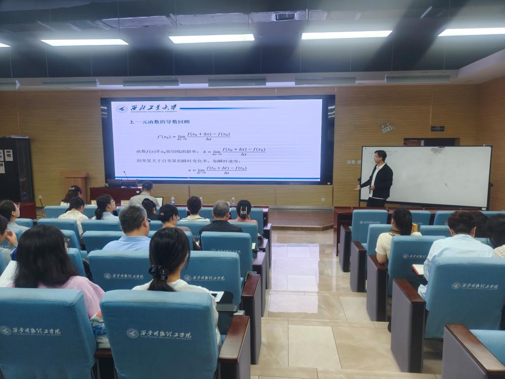 9月12日上午,学院邀请西北工业大学三位优秀青年教师开展示范教学。西北工业大学第五届教师教学创新竞赛特等奖获得者李文忠副教授,以“复变函数的导数”为题,用公式推导厘清抽象概念逻辑,借实例具象化难懂理论。并融入课程思政,实现知识与价值引领融合,让数学课堂有深度更有温度。