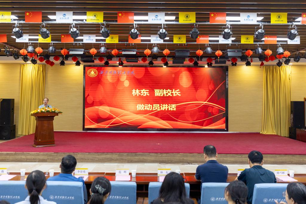会议最后,副校长林东做动员讲话。他首先代表学校,向长期关注支持数学建模工作的教练团队致以诚挚敬意,向满怀斗志的参赛学子送上殷切祝福。他提出对参赛学子“敢闯、肯钻、善合”三点希望,鼓励学生展现风采、收获成长,不仅要追求奖项荣誉,更要收获面对复杂问题的从容心态、解决实际困难的创新思维,以及终生难忘的团队奋斗记忆。