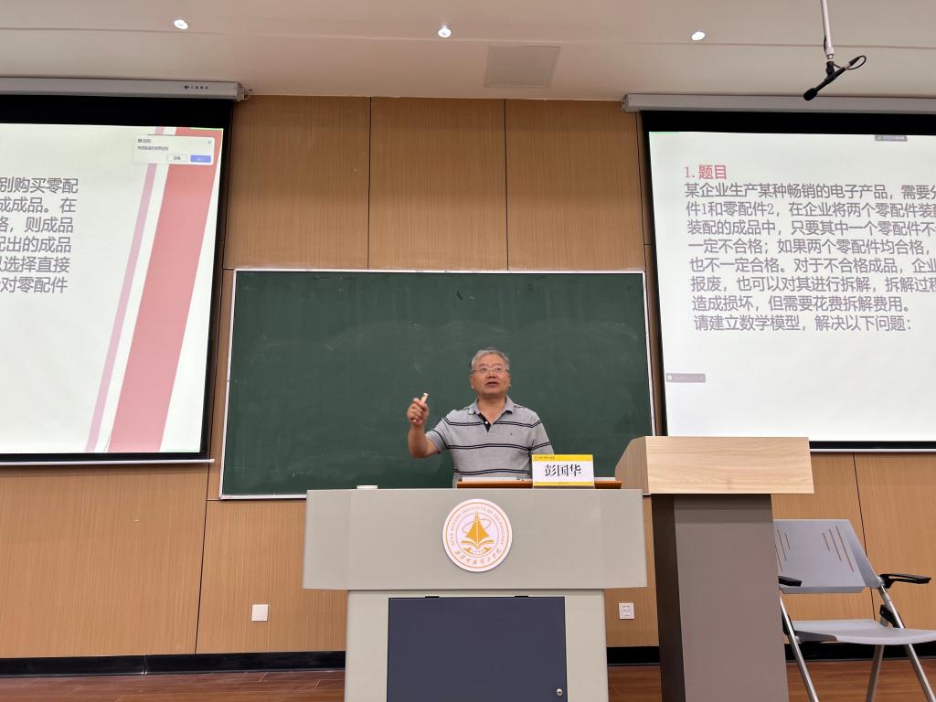 在报告中,彭教授首先介绍了数学建模竞赛对创新型人才培养的重要性。他特别强调了对题目进行深度理解的必要性,并以2024年B题“生产过程中的决策问题”为例,详细阐述了如何从赛题的背景、平台、目标来完成对赛题的初步理解,如何在赛题中的子问题中找出其相关性、层次性和主次,在建模过程中要考虑背景与模型方法的相融性等等。