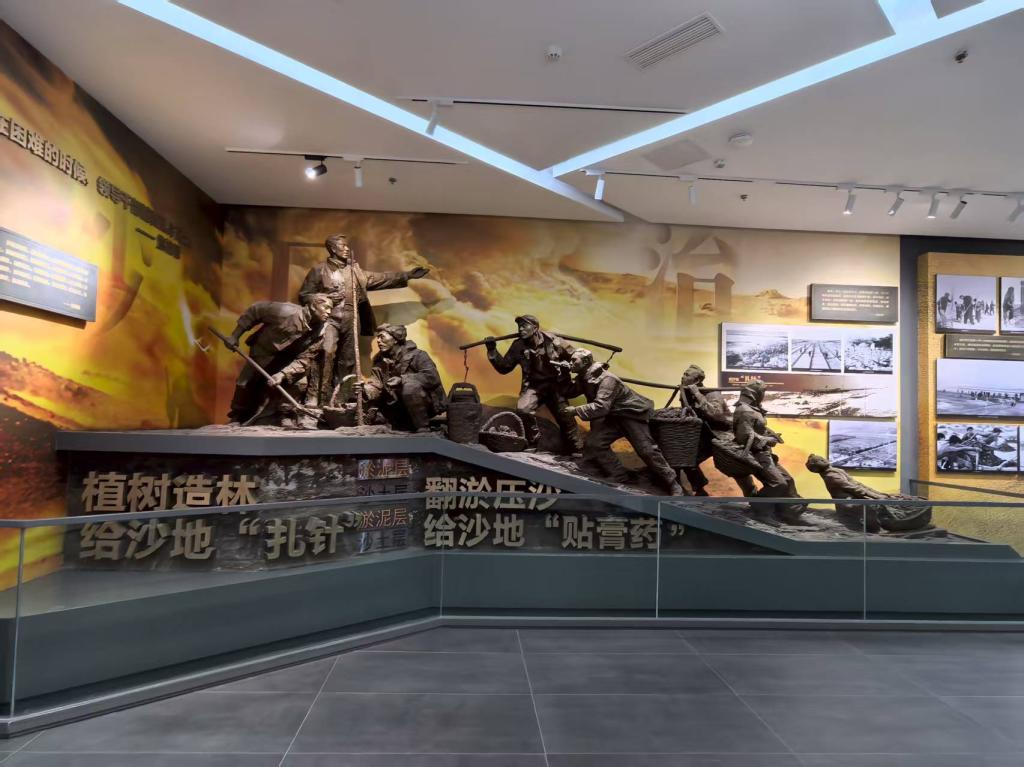 展馆以大量历史照片、数据图表、模拟沙盘,真实再现了上世纪60年代初兰考面临的风沙、内涝、盐碱,三大自然灾害的肆虐景象。狂风卷起黄沙吞噬良田,雨水积聚成涝淹没村庄,盐碱泛白板结土地,“兰考之难”触目惊心。焦裕禄到任后说“吃别人嚼过的馍没味道”,他在120余天跋涉5000余里,走遍全县120多个生产大队,亲手绘制灾情分布图,摸清了“三害”的根源与规律。针对风沙,他推广“贴膏药、扎针”法(黏土压沙、泡桐固沙);治理内涝,他提出“夏秋观察、冬春治理”,带领群众开挖排水沟渠;改良盐碱,他试验“翻淤压碱”等土办法。展馆内陈列的他使用过的测量工具、手写的治理笔记,字里行间浸透着科学求实与因地制宜的智慧。“干部不领,水牛掉井”。焦裕禄同志身先士卒,在漫天风沙中查风口,在倾盆大雨里探水流,在齐腰深的洪水中查看灾情。他的身影极大地鼓舞了兰考人民的斗志,凝聚起改天换地的磅礴力量。